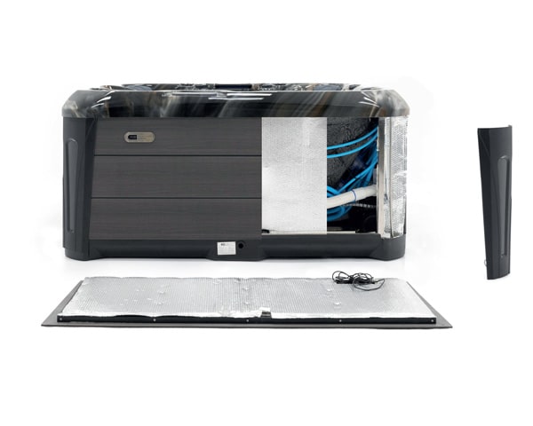 The Platinum Thermo Cover delivers superior protection and efficiency. Engineered with multiple layers of high-quality polystyrene, it minimizes heat loss, reducing energy costs. Weatherproof fabric and a protective polyester bag safeguard against rain, snow, and UV rays. A robust stainless steel spine prevents sagging, while a UV-protective cap maintains the cover's pristine condition. Designed for safety and durability, this cover ensures a clean, warm, and energy-efficient spa experience year-round.