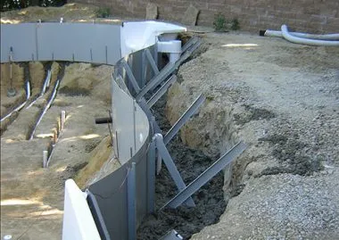 Backfilling can be poured if desired, but is not necessary as the X-Braces™ are designed to support the pool walls independently, even when filled with water.